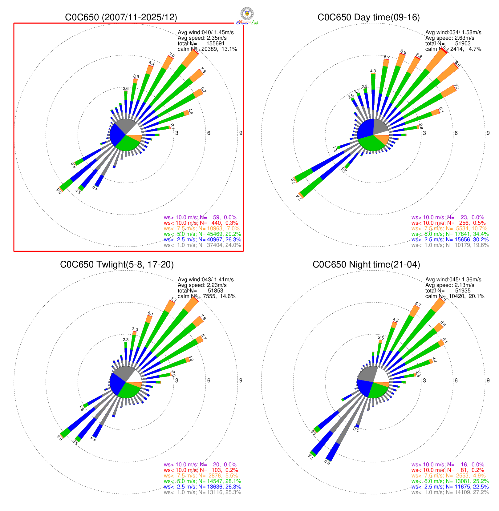 月平均雷達回波頻率之日夜變化