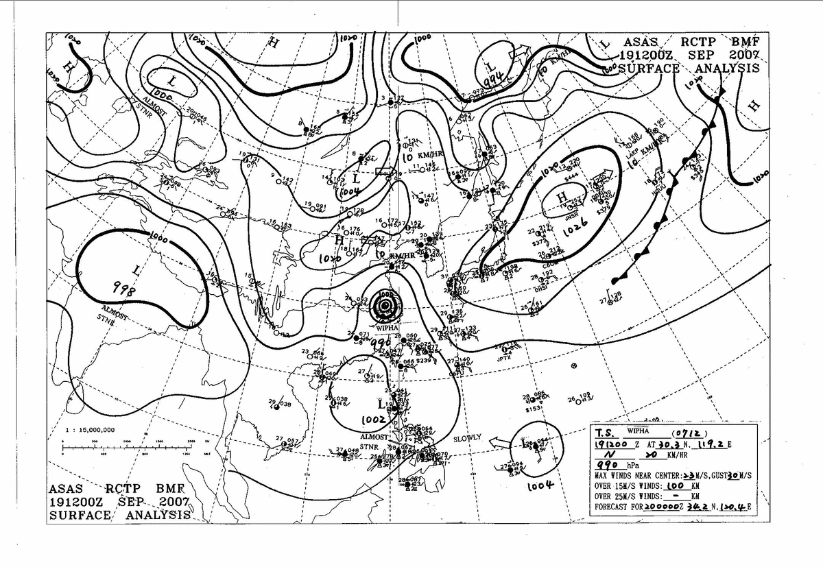 2007/09/19 12z sfcmap 天氣圖