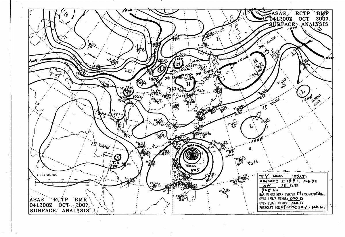 2007/10/04 12z sfcmap 天氣圖