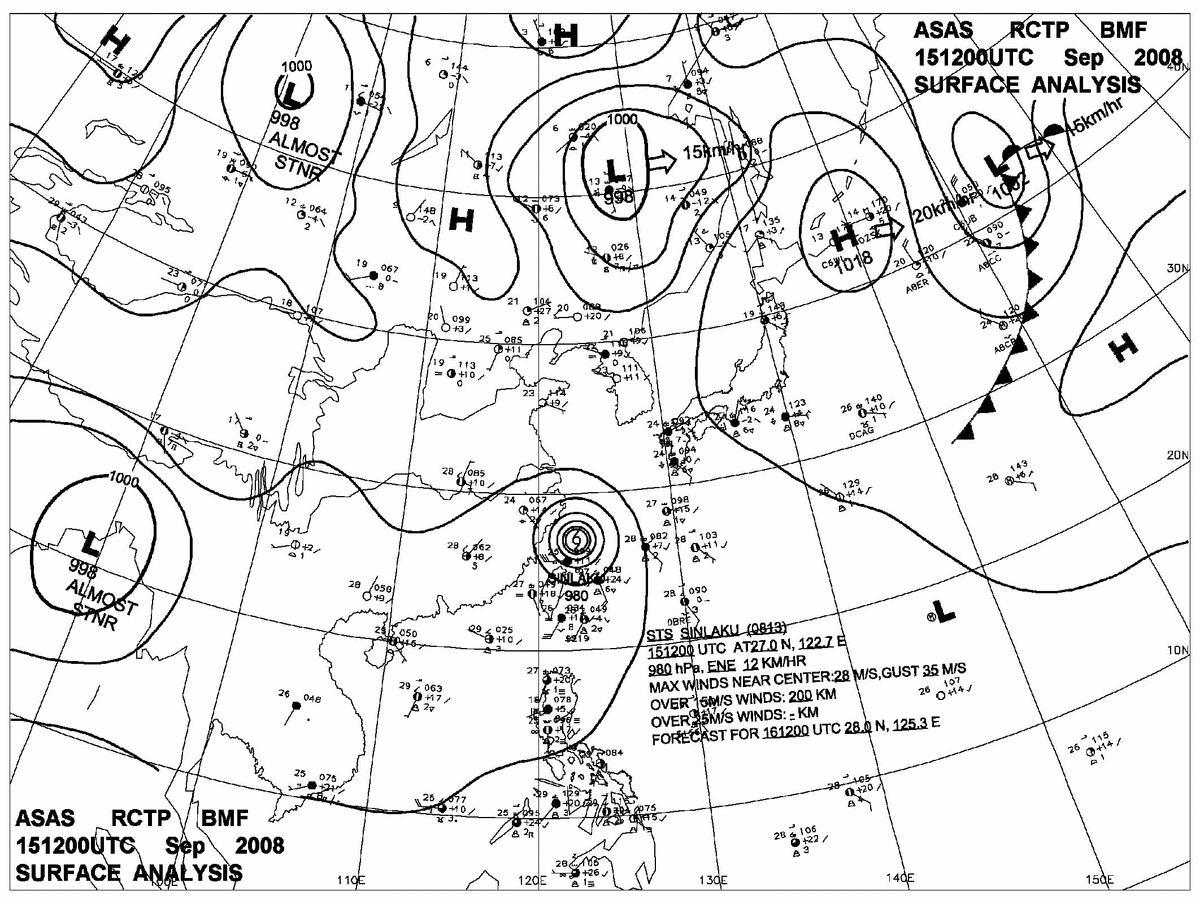 2008/09/15 12z sfcmap 天氣圖