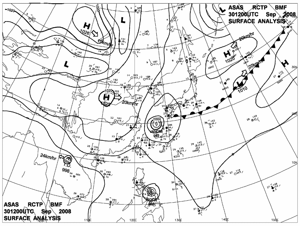 2008/09/30 12z sfcmap 天氣圖