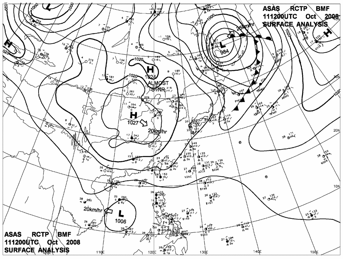 2008/10/11 12z sfcmap 天氣圖