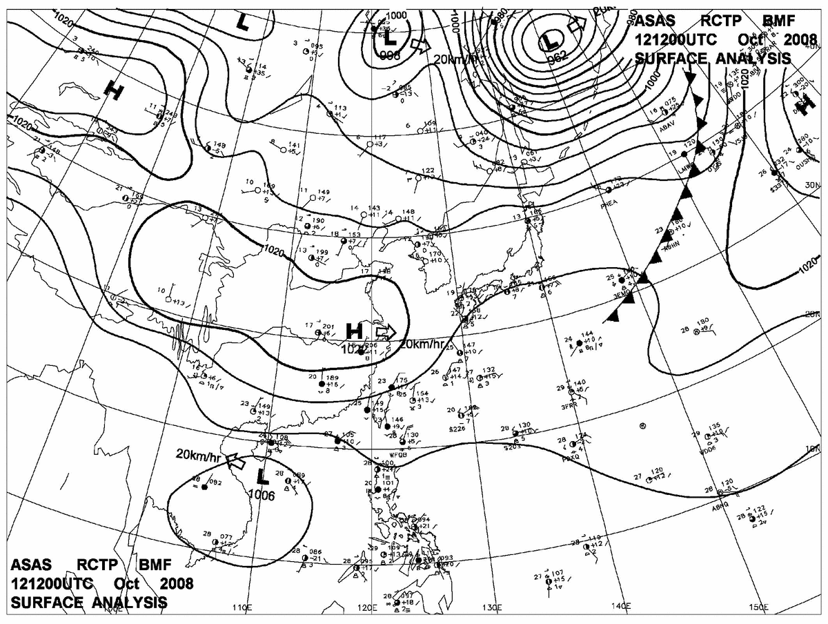 2008/10/12 12z sfcmap 天氣圖