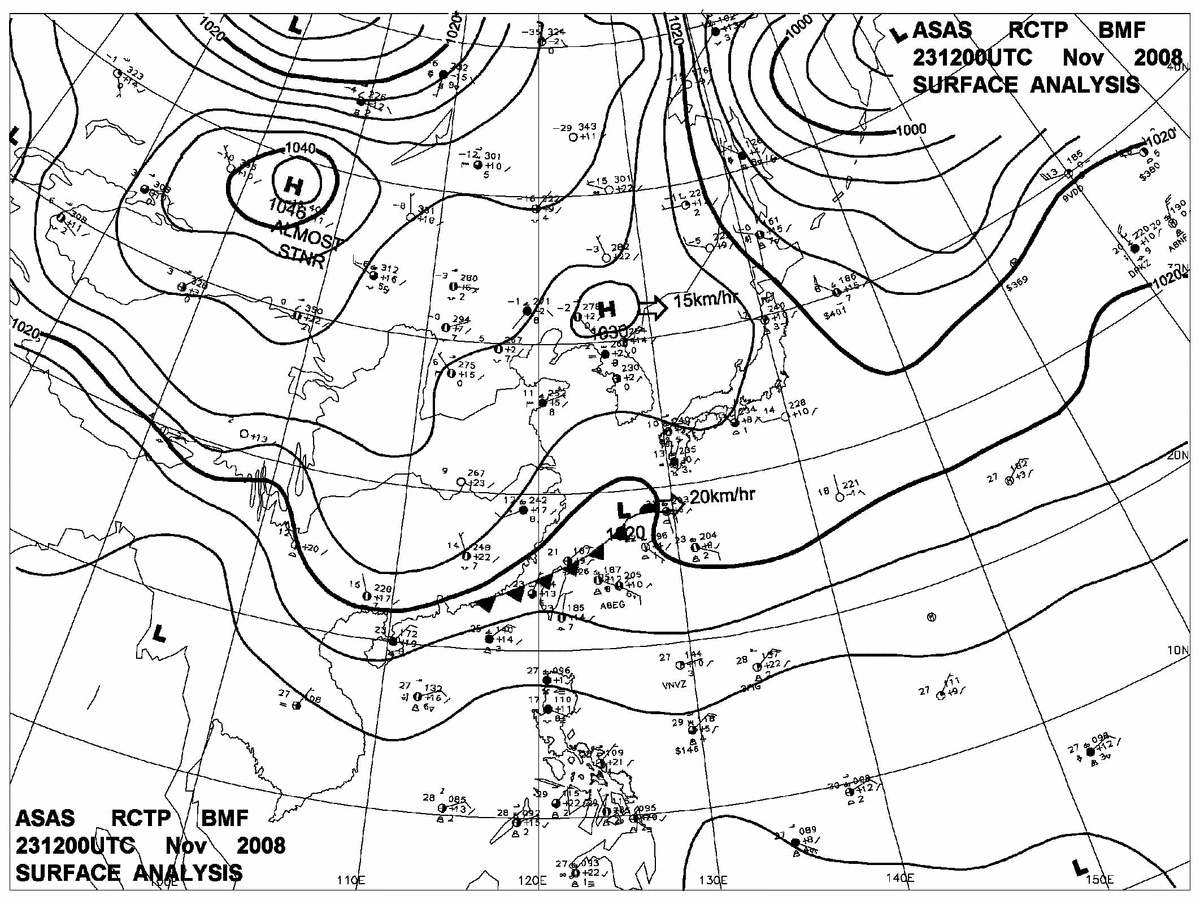 2008/11/23 12z sfcmap 天氣圖