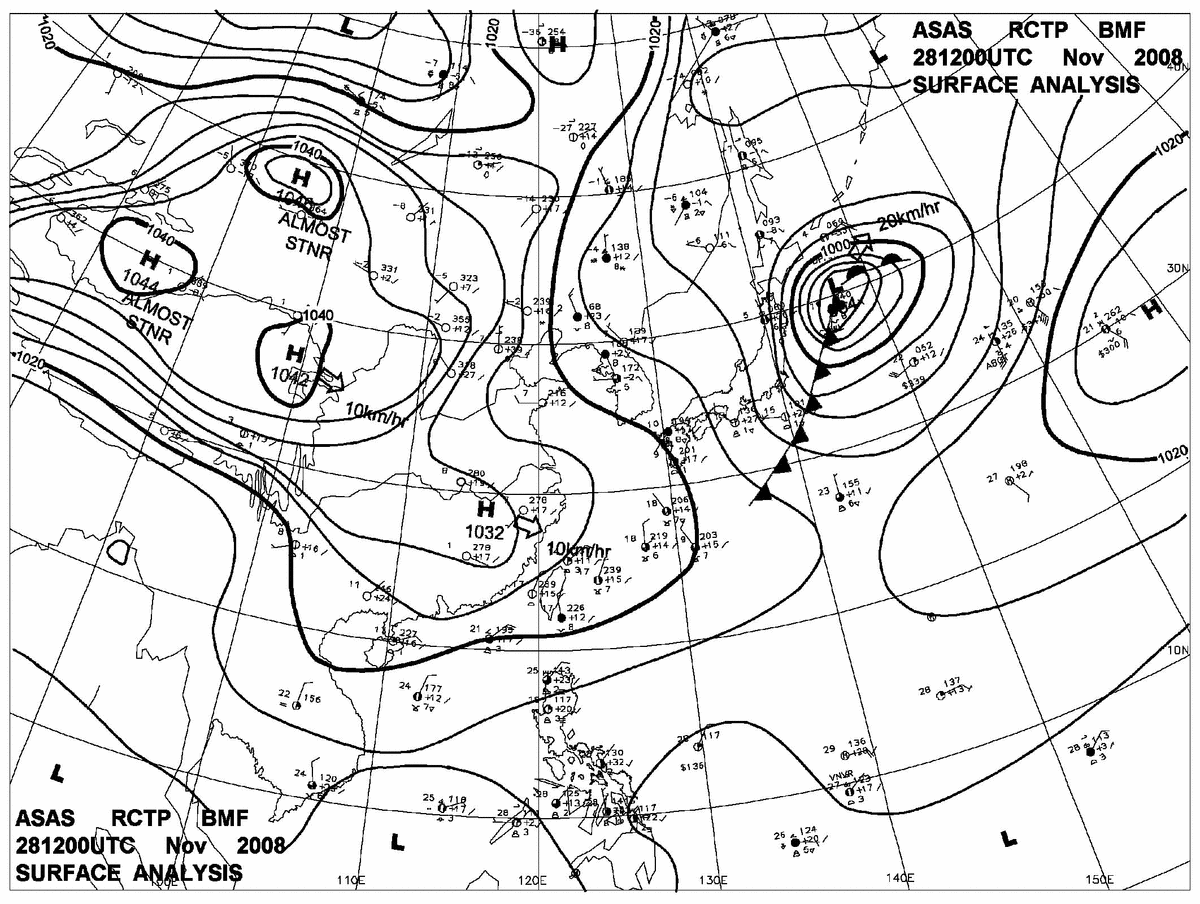 2008/11/28 12z sfcmap 天氣圖