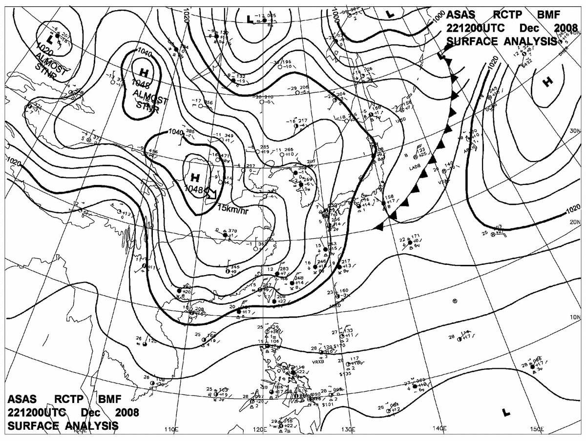 2008/12/22 12z sfcmap 天氣圖