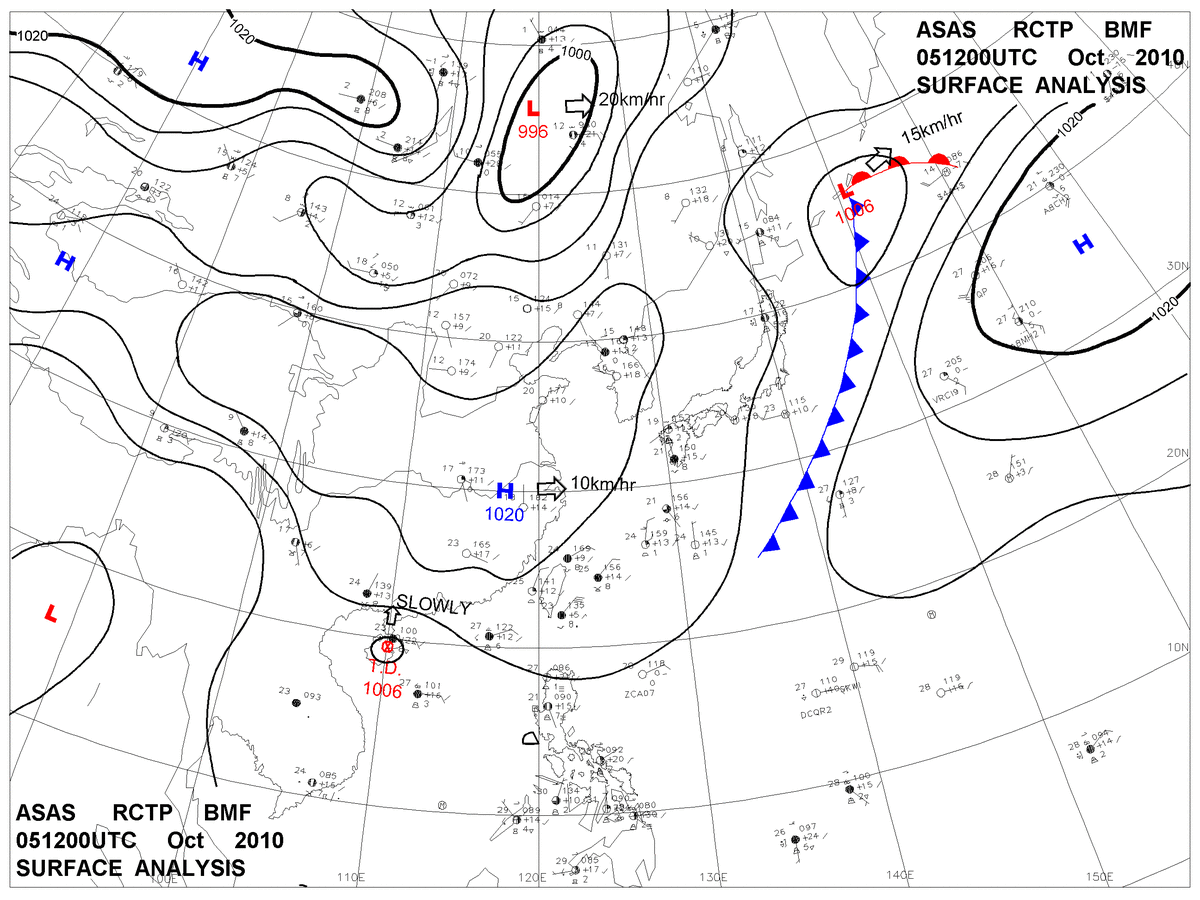 2010/10/05 12z sfcmap 天氣圖