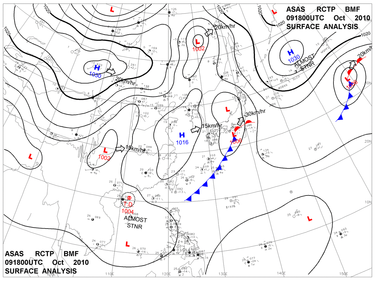 2010/10/09 18z sfcmap 天氣圖