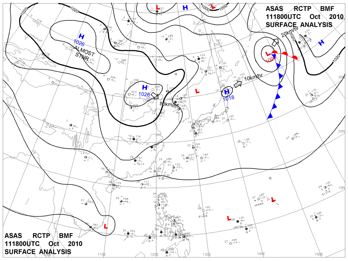 2010/10/11 18z sfcmap 天氣圖