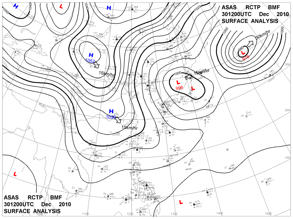 2010/12/30 12z sfcmap 天氣圖