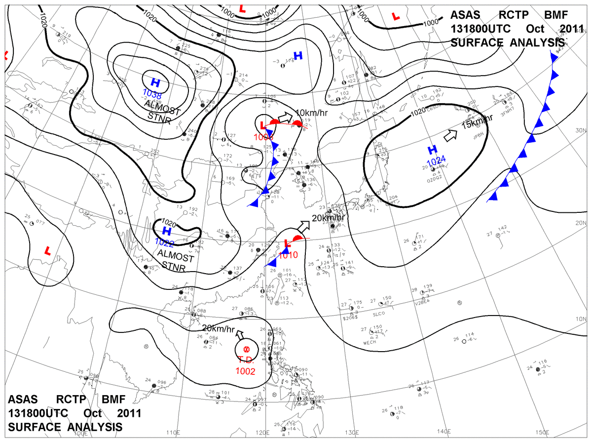 2011/10/13 18z sfcmap 天氣圖