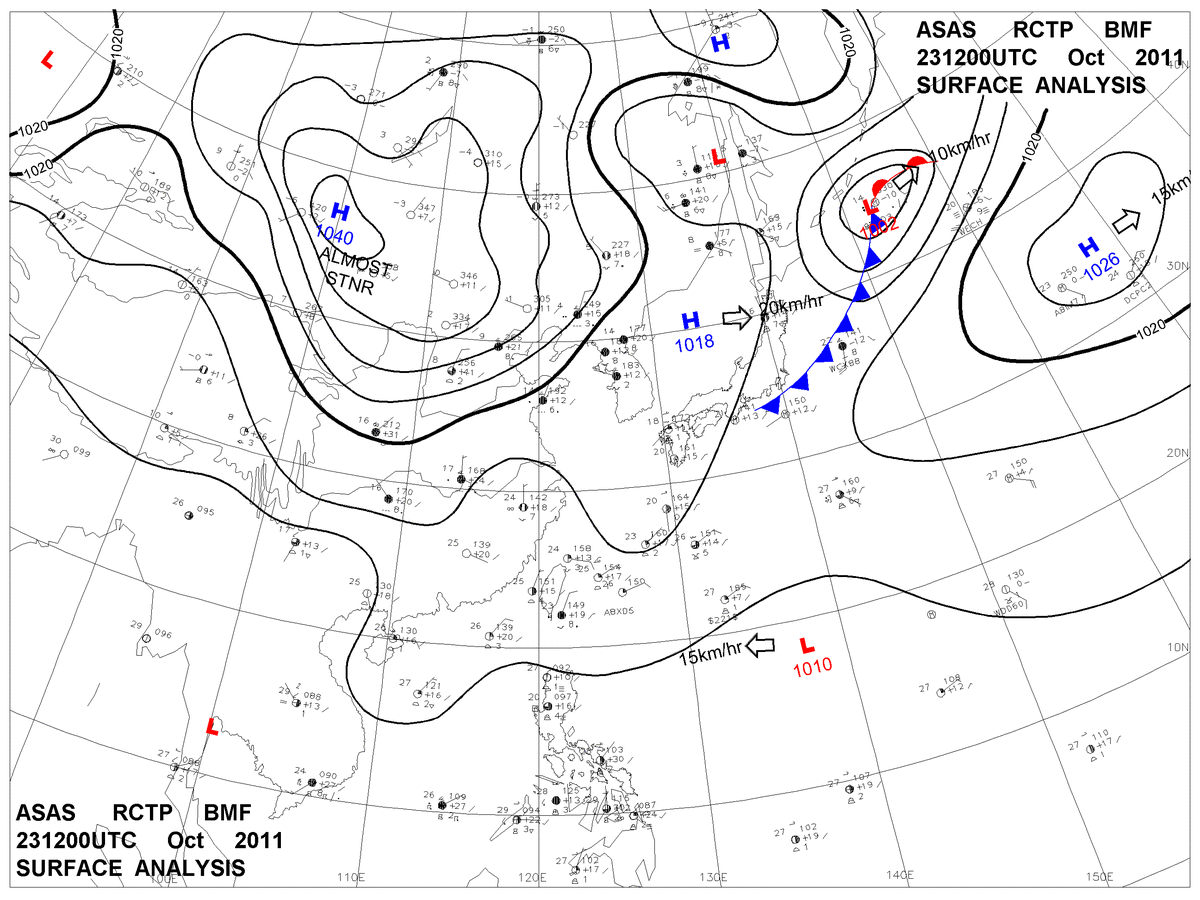 2011/10/23 12z sfcmap 天氣圖