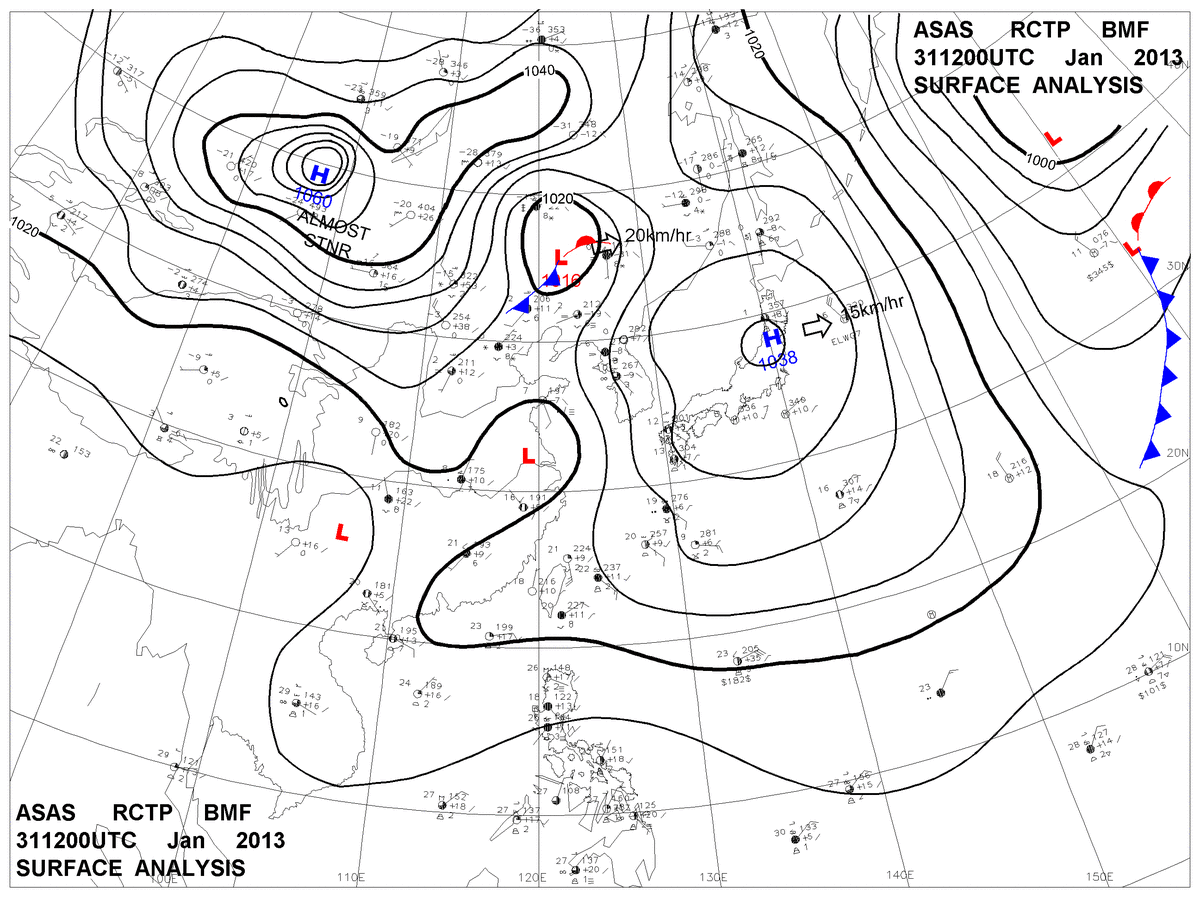 2013/01/31 12z sfcmap 天氣圖