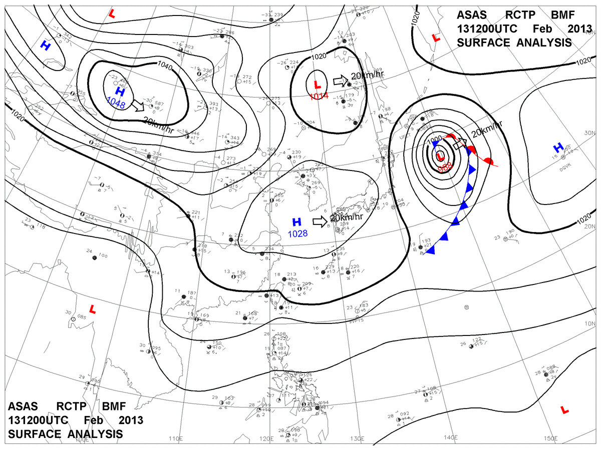 2013/02/13 12z sfcmap 天氣圖