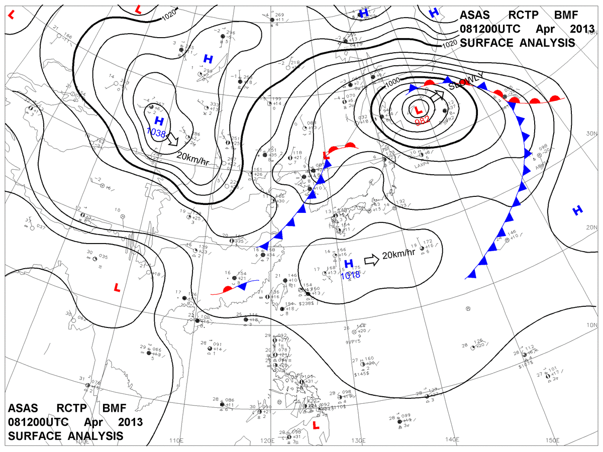 2013/04/08 12z sfcmap 天氣圖