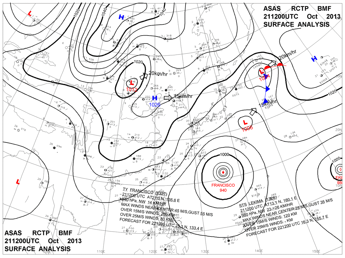 2013/10/21 12z sfcmap 天氣圖