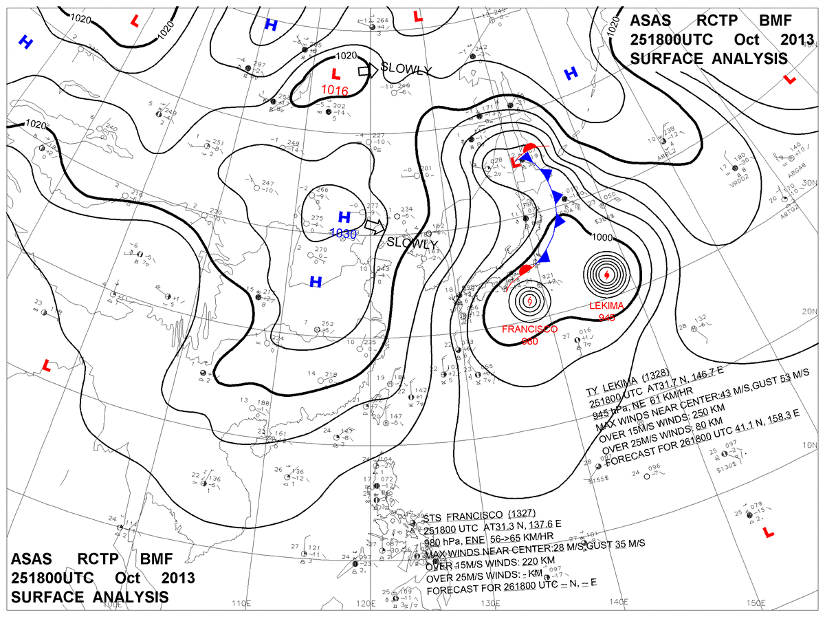 2013/10/25 18z sfcmap 天氣圖