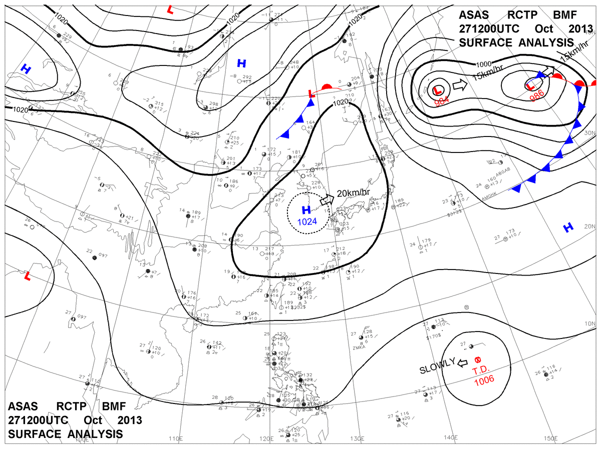2013/10/27 12z sfcmap 天氣圖