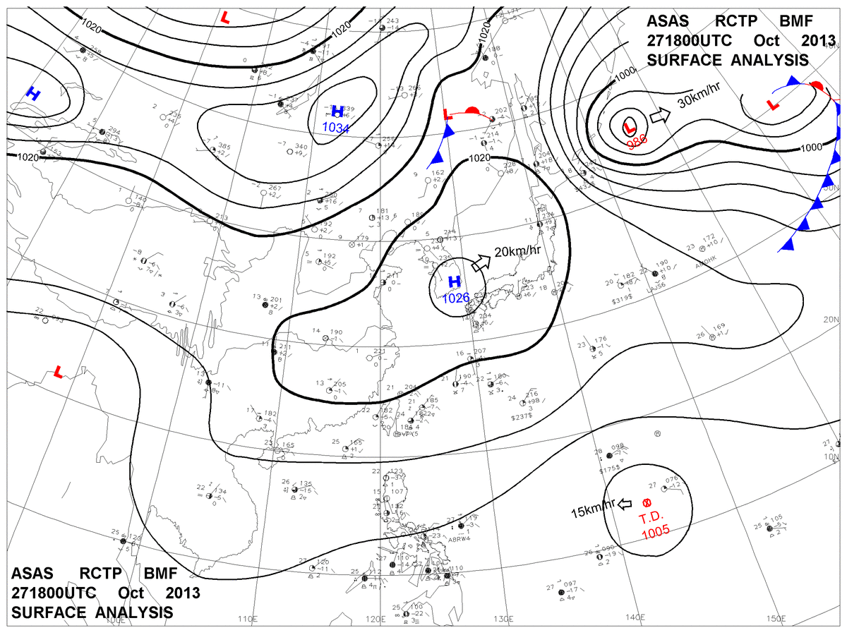 2013/10/27 18z sfcmap 天氣圖