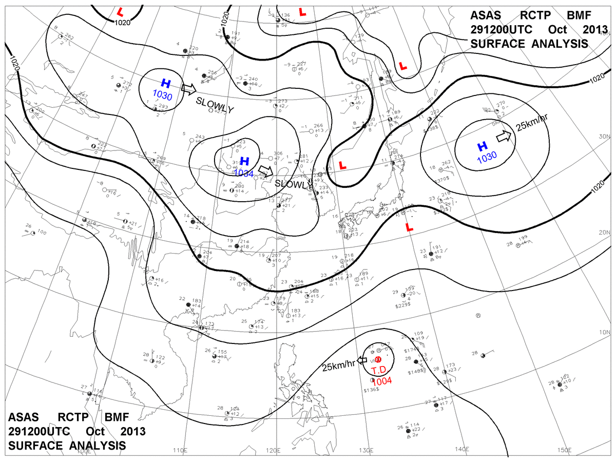 2013/10/29 12z sfcmap 天氣圖
