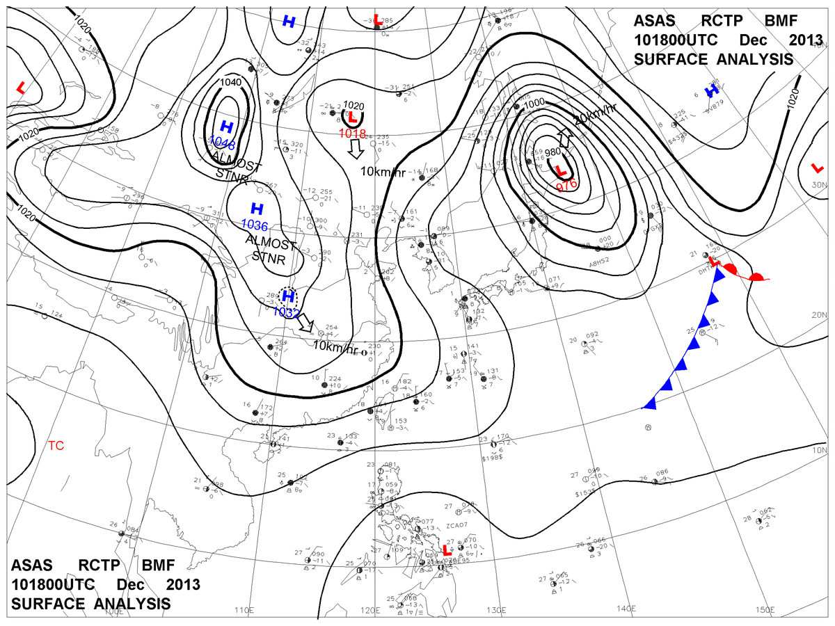 2013/12/10 18z sfcmap 天氣圖