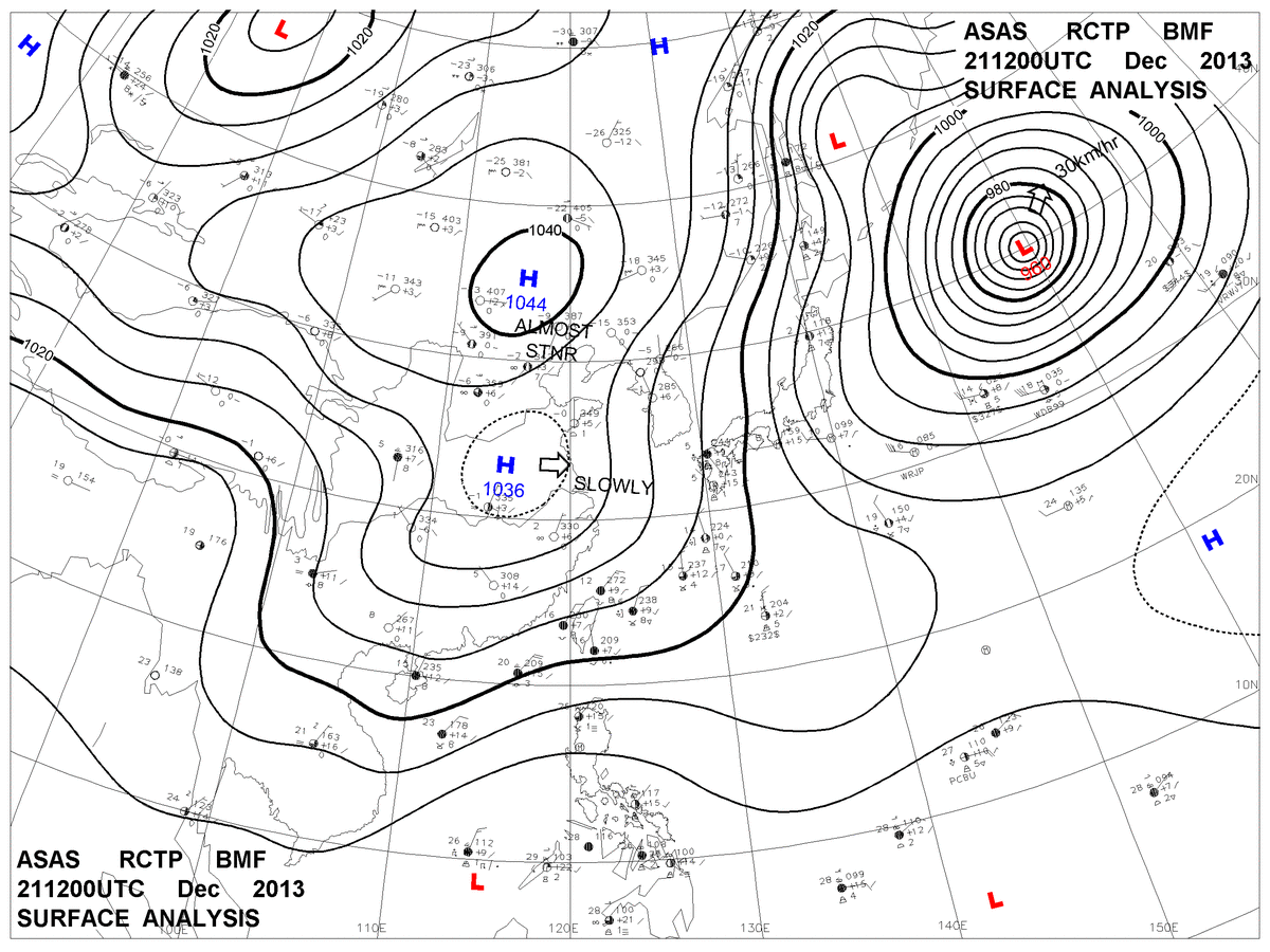 2013/12/21 12z sfcmap 天氣圖