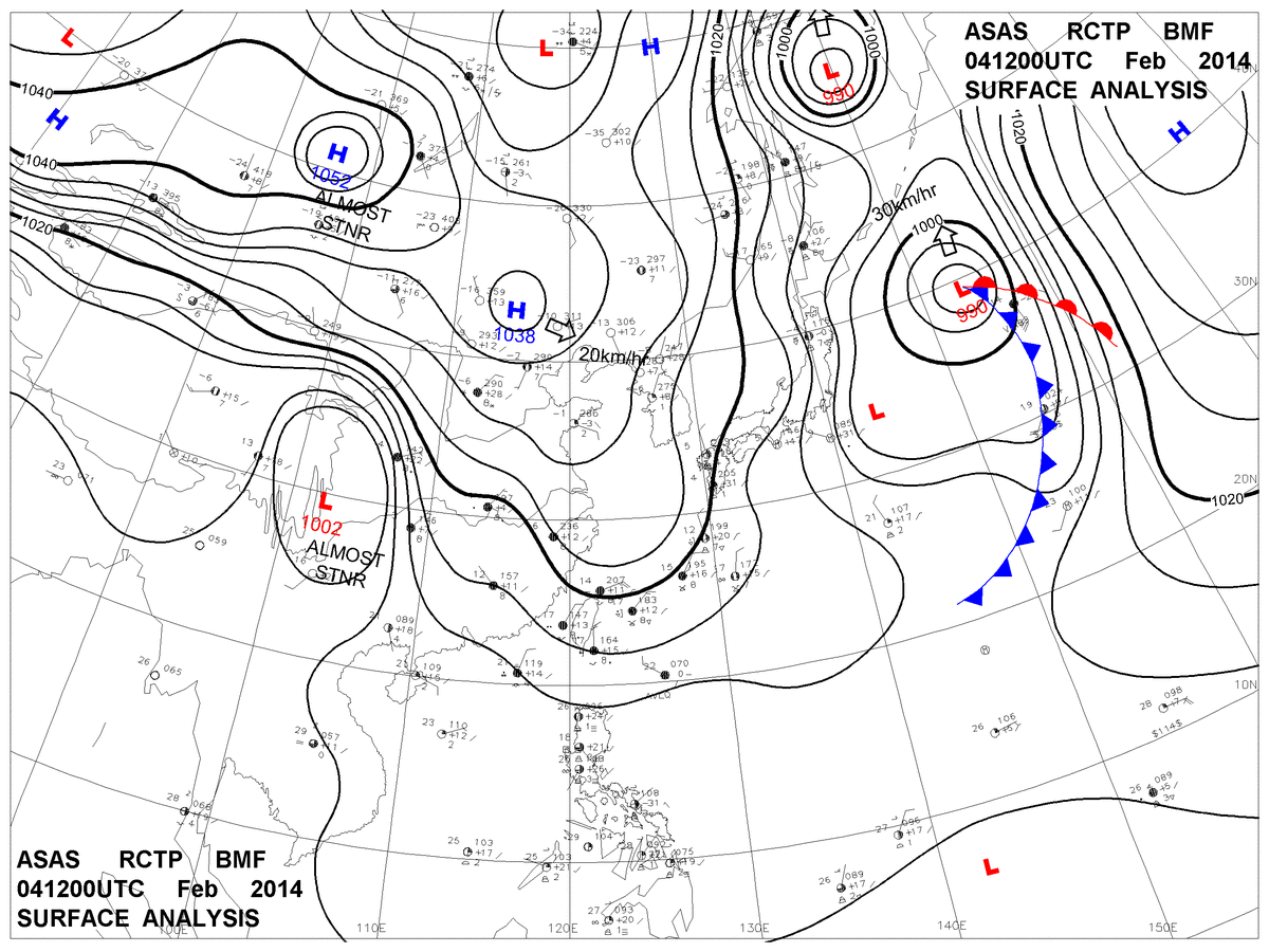 2014/02/04 12z sfcmap 天氣圖