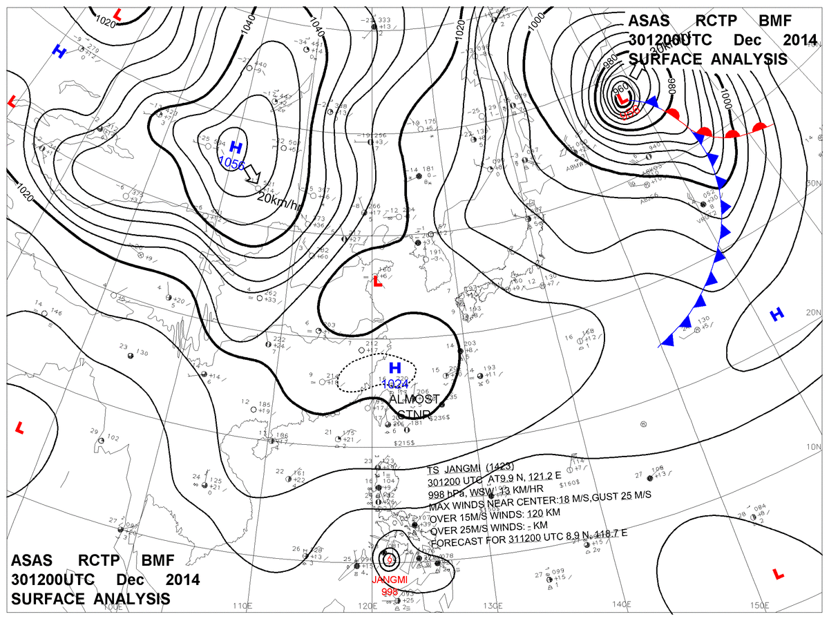 2014/12/30 12z sfcmap 天氣圖
