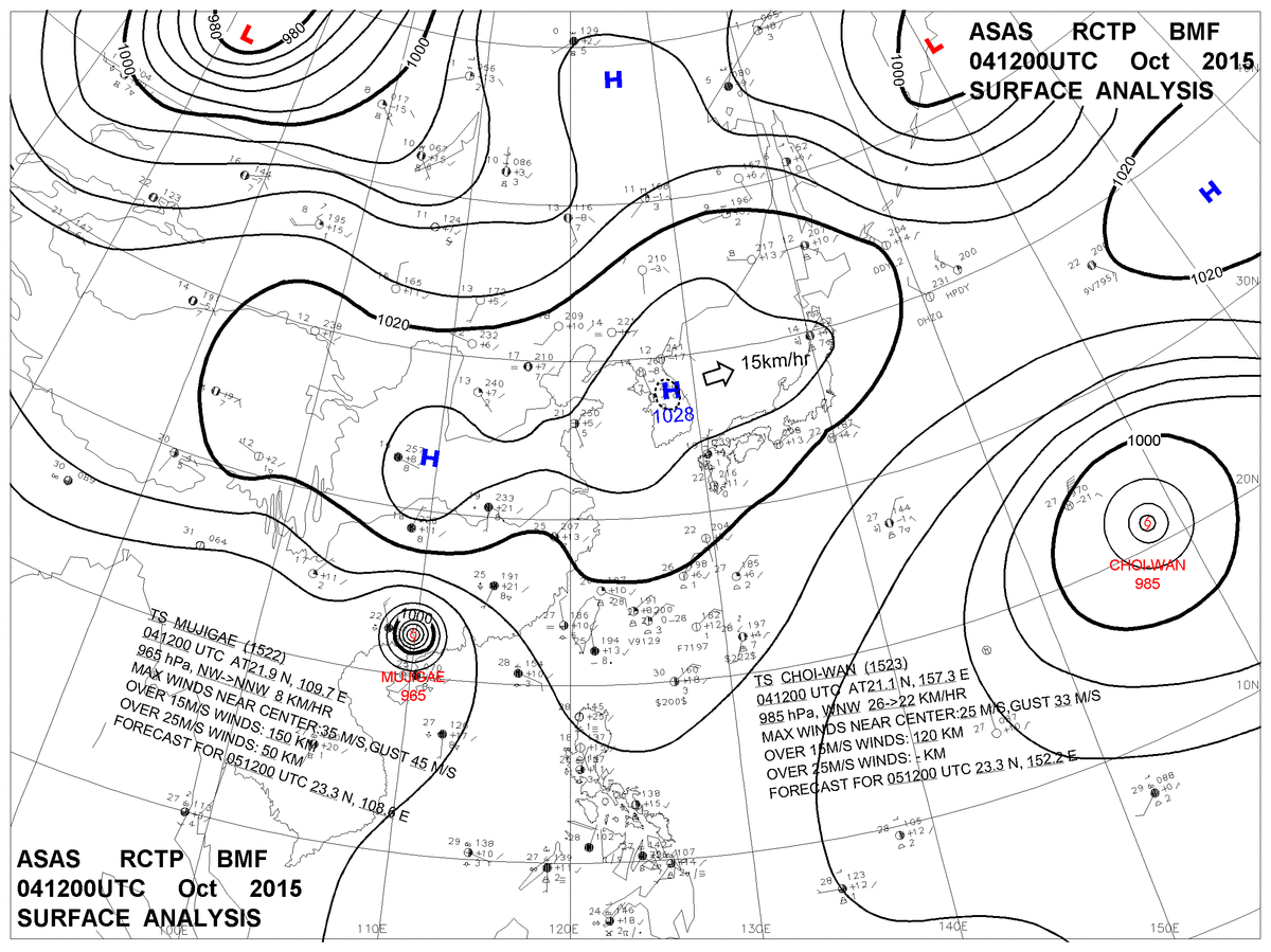 2015/10/04 12z sfcmap 天氣圖