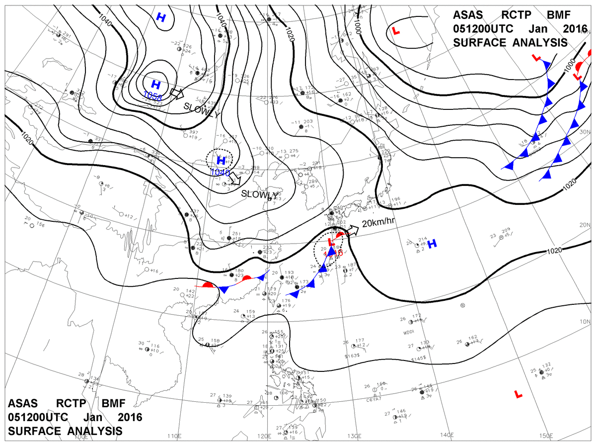 2016/01/05 12z sfcmap 天氣圖