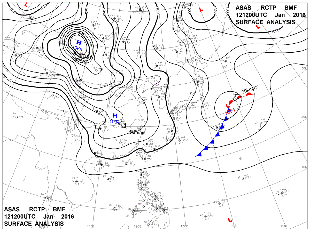 2016/01/12 12z sfcmap 天氣圖