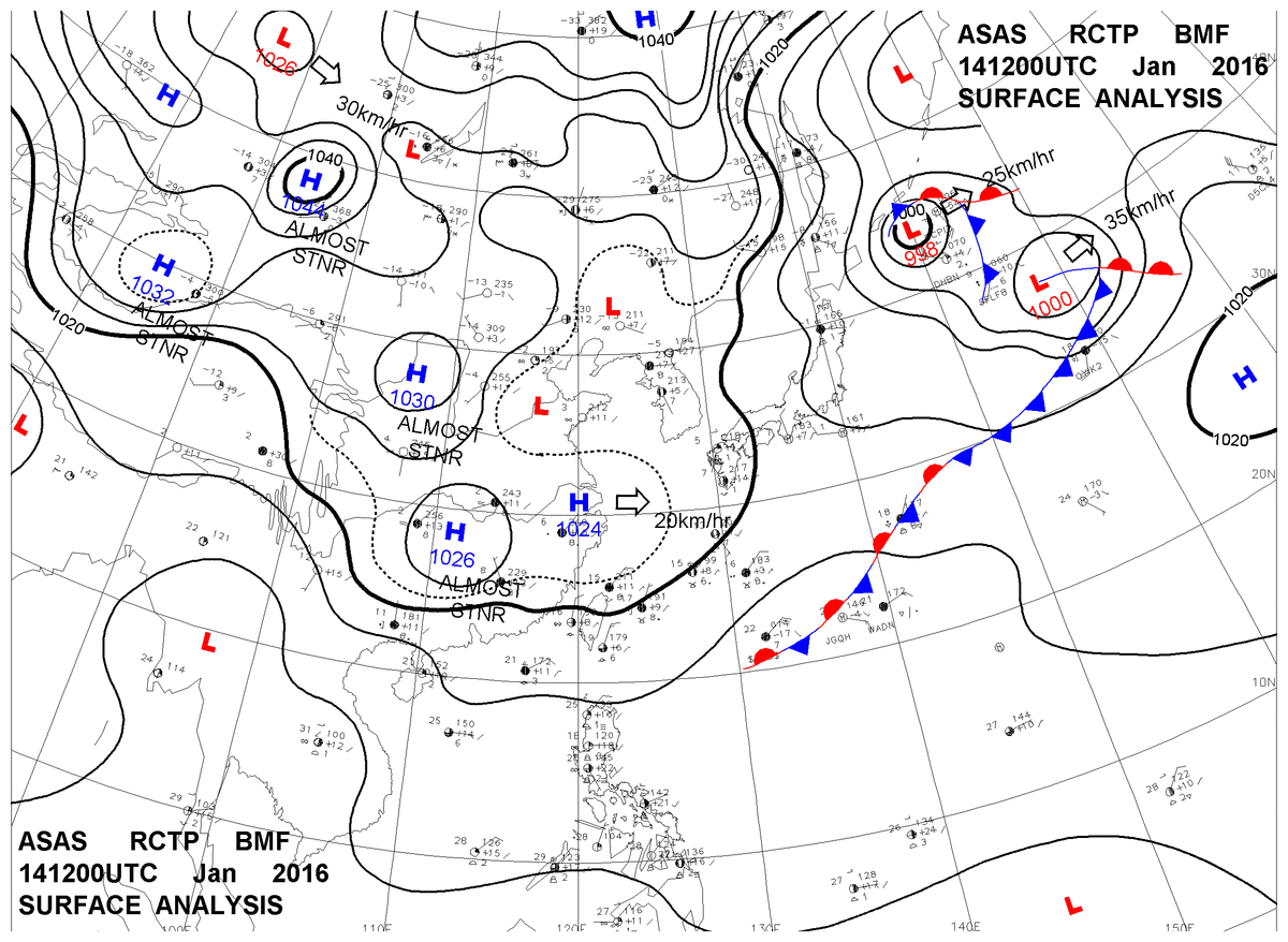 2016/01/14 12z sfcmap 天氣圖