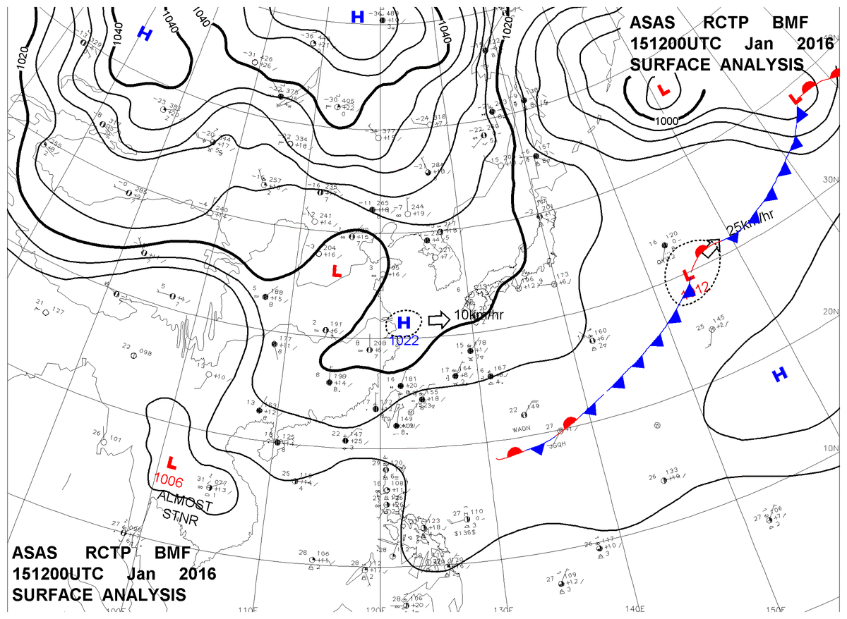 2016/01/15 12z sfcmap 天氣圖
