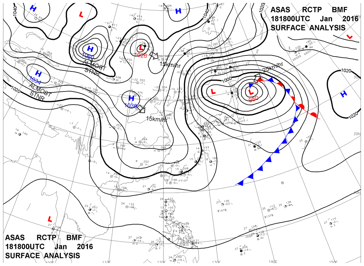 2016/01/18 18z sfcmap 天氣圖
