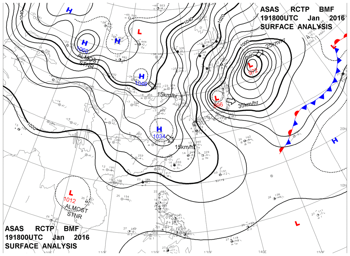 2016/01/19 18z sfcmap 天氣圖