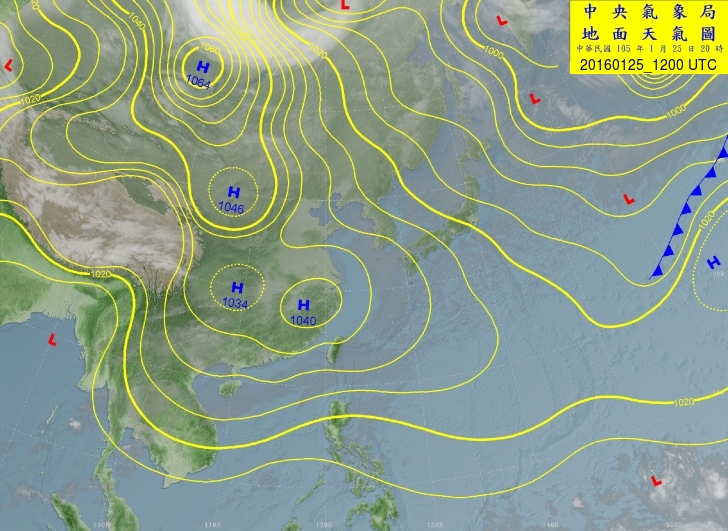 2016-01-25 12 UTC CWB 地面圖
