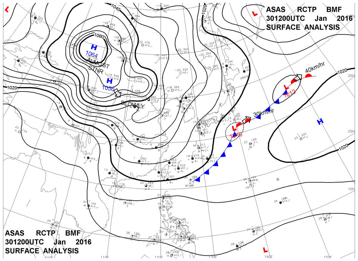 2016/01/30 12z sfcmap 天氣圖