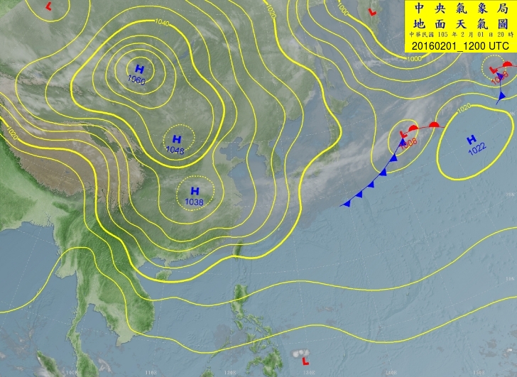 2016-02-01 12 UTC CWB 地面圖