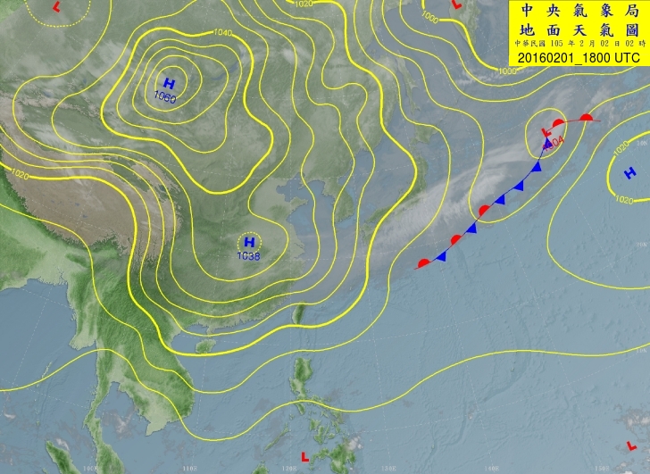 2016-02-01 18 UTC CWB 地面圖