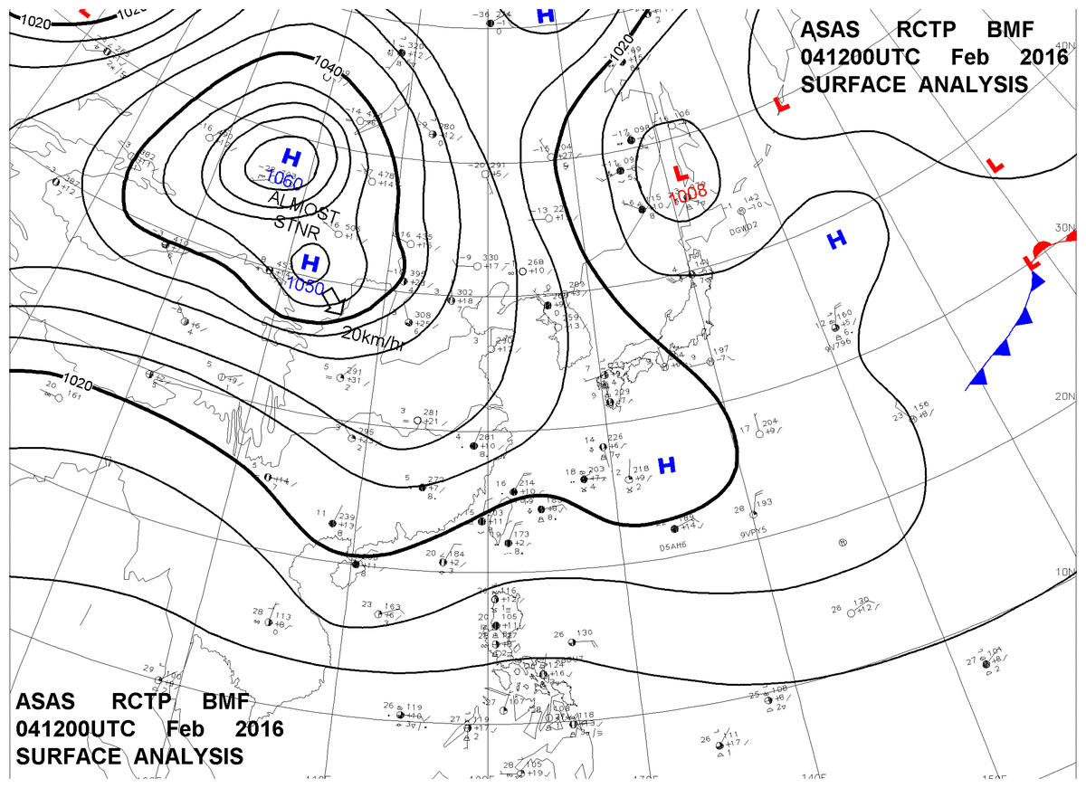2016/02/04 12z sfcmap 天氣圖