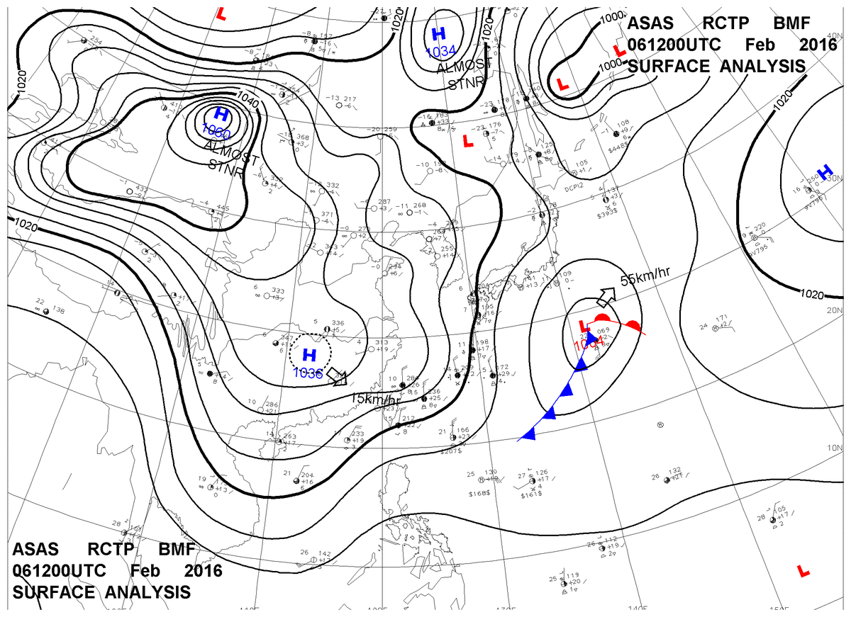 2016/02/06 12z sfcmap 天氣圖