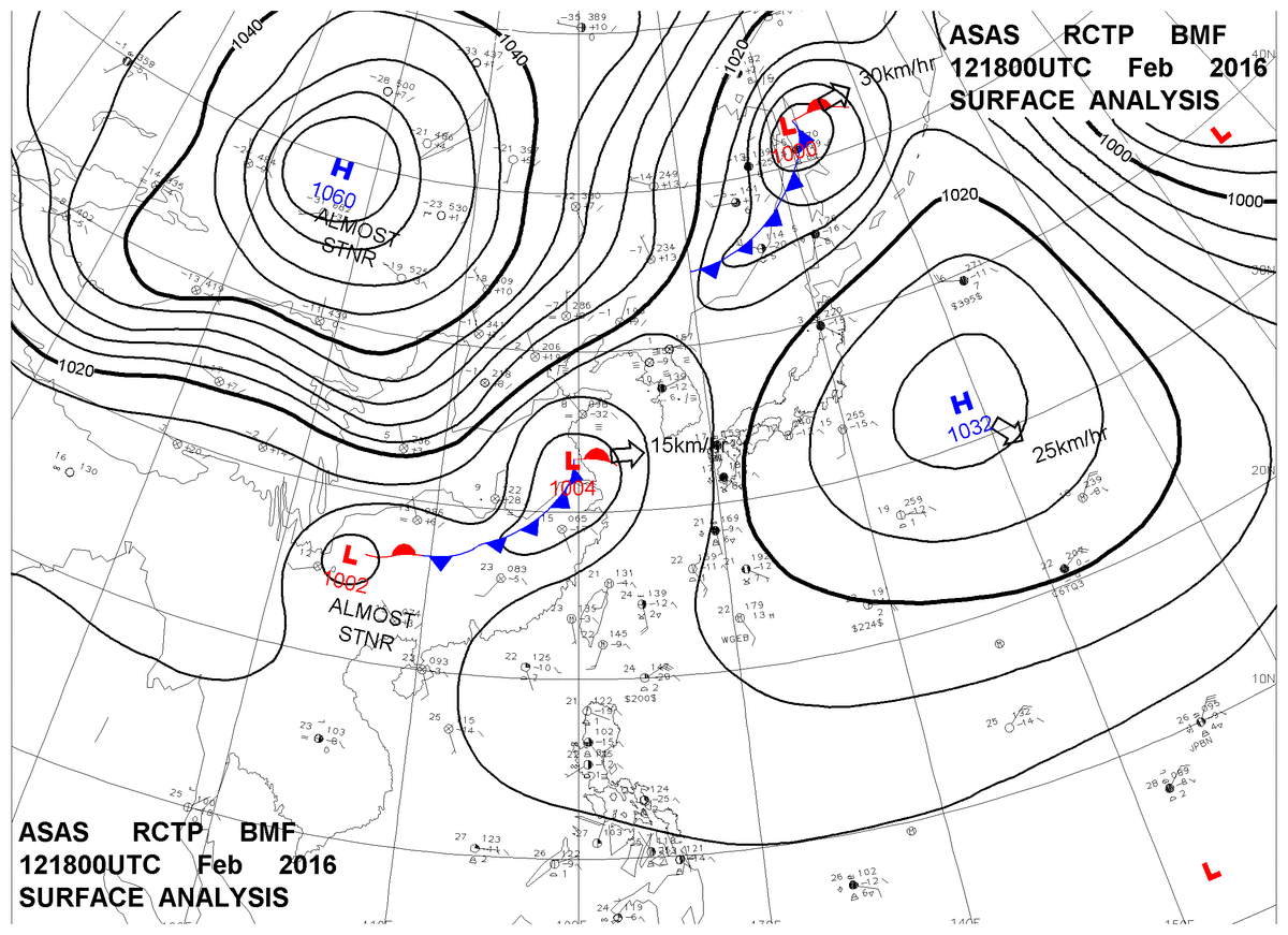 2016/02/12 18z sfcmap 天氣圖