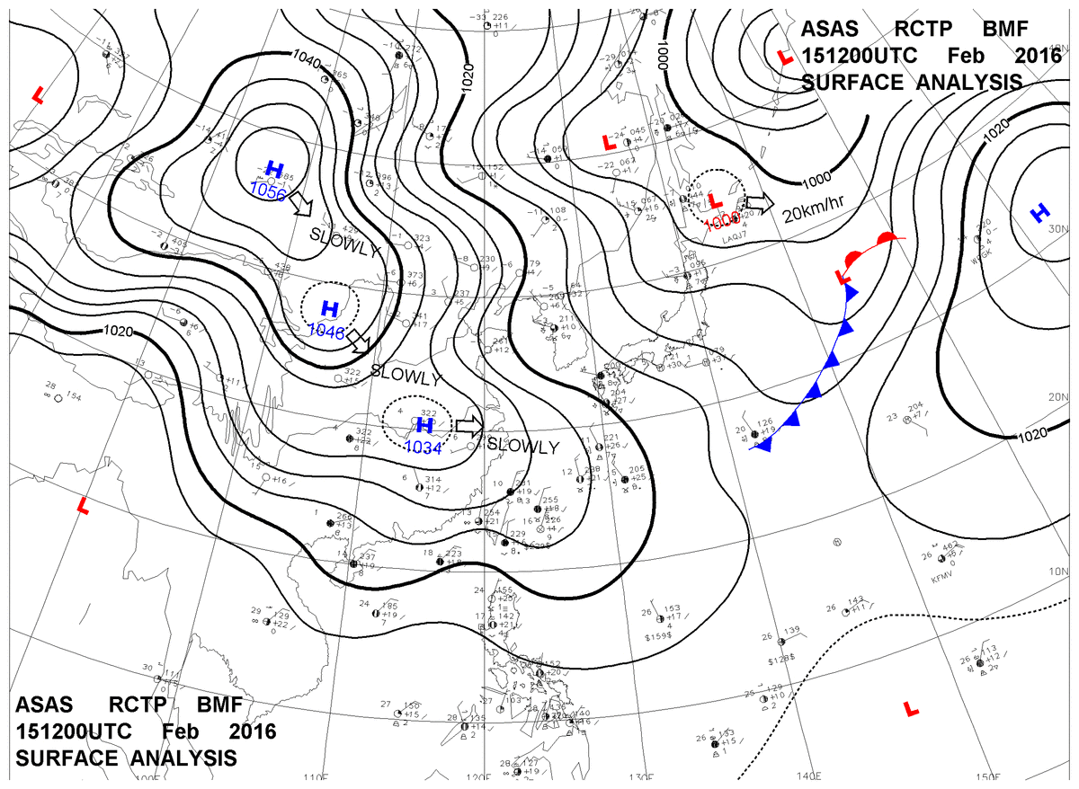 2016/02/15 12z sfcmap 天氣圖