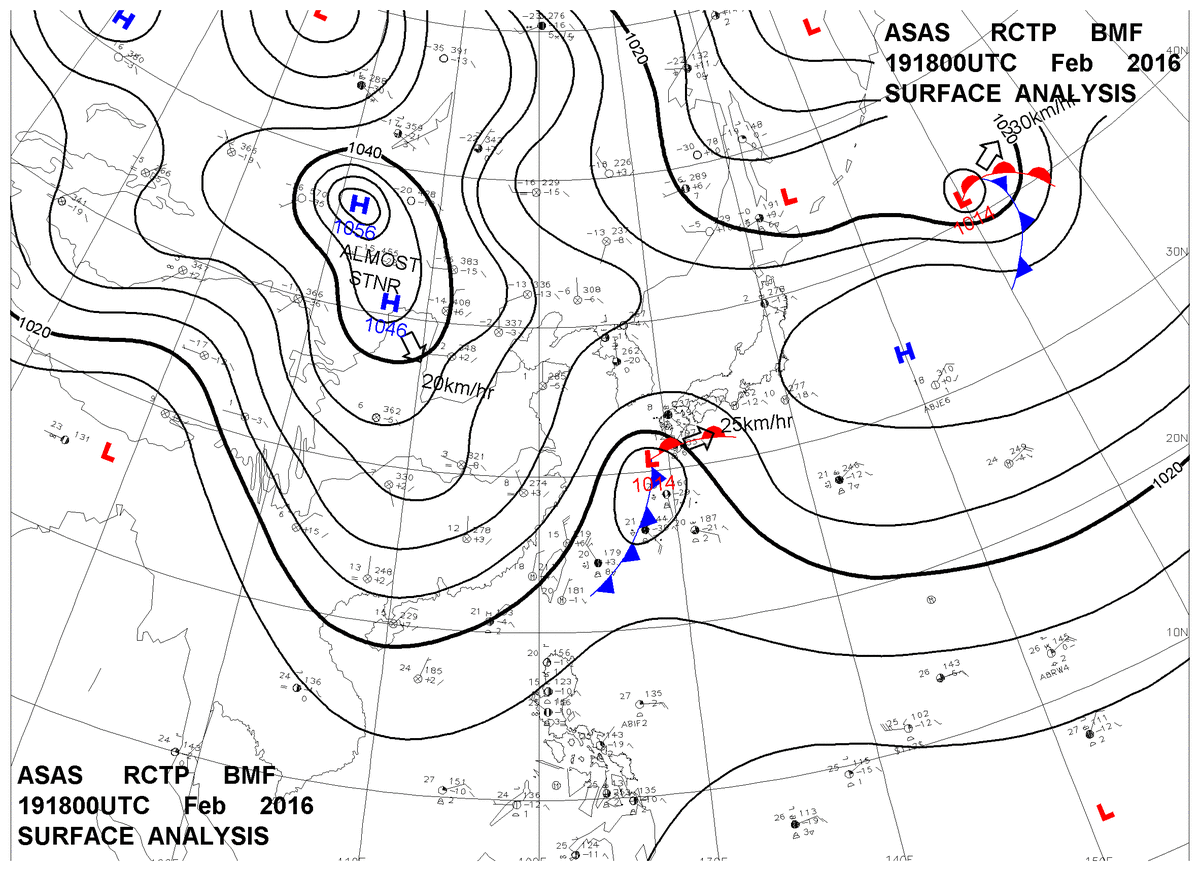 2016/02/19 18z sfcmap 天氣圖