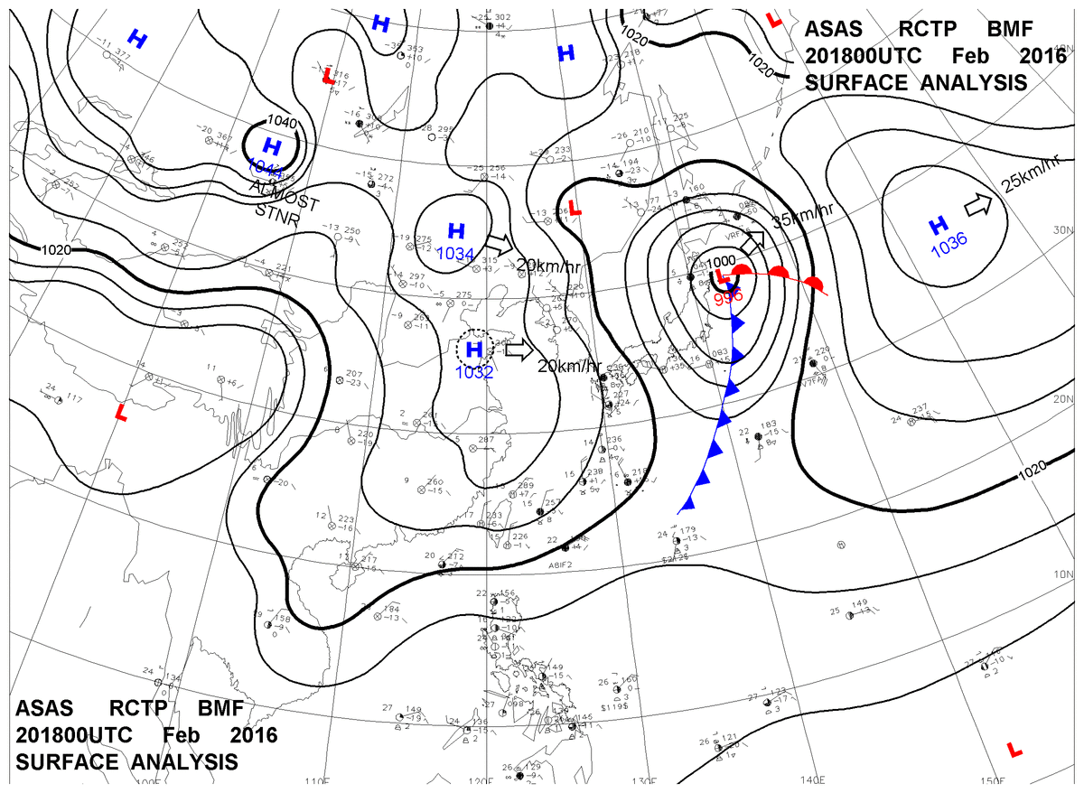 2016/02/20 18z sfcmap 天氣圖