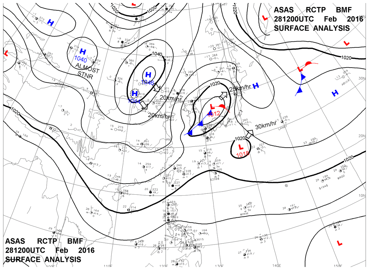 2016/02/28 12z sfcmap 天氣圖