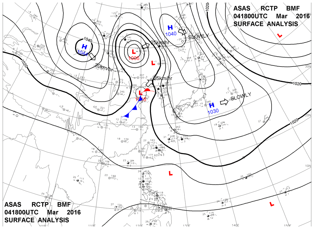 2016/03/04 18z sfcmap 天氣圖