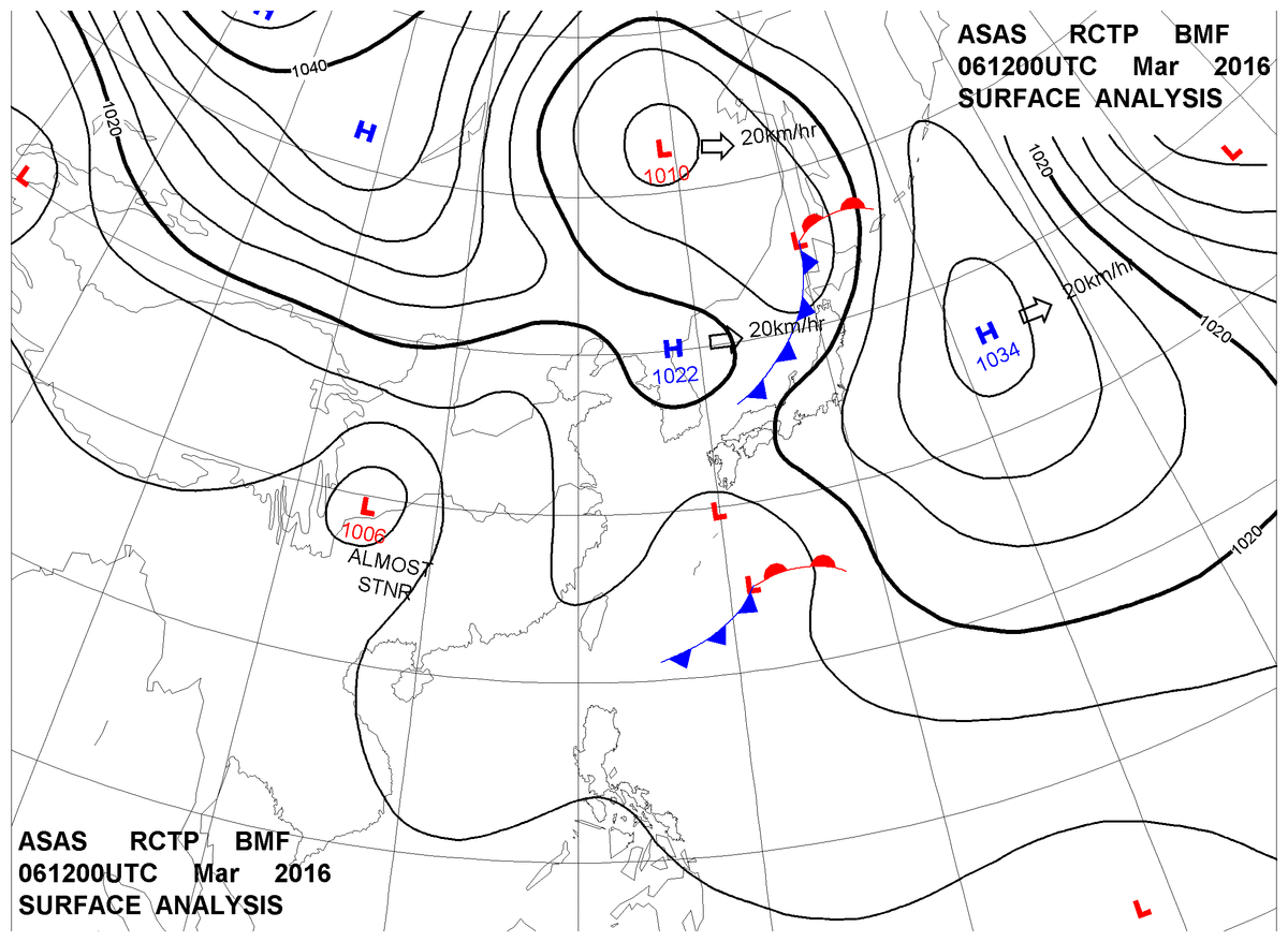 2016/03/06 12z sfcmap 天氣圖