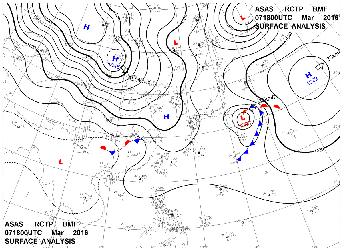 2016/03/07 18z sfcmap 天氣圖