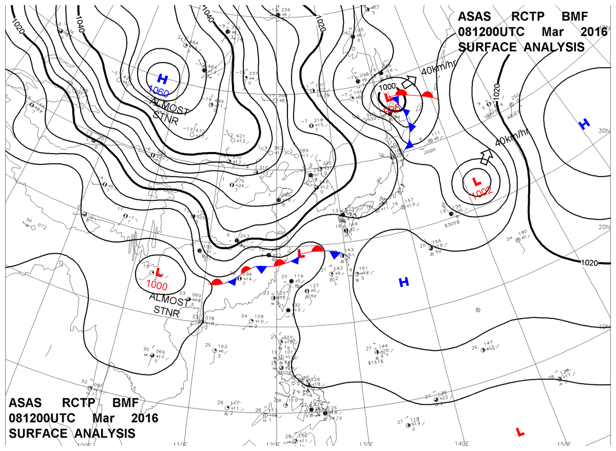 2016/03/08 12z sfcmap 天氣圖